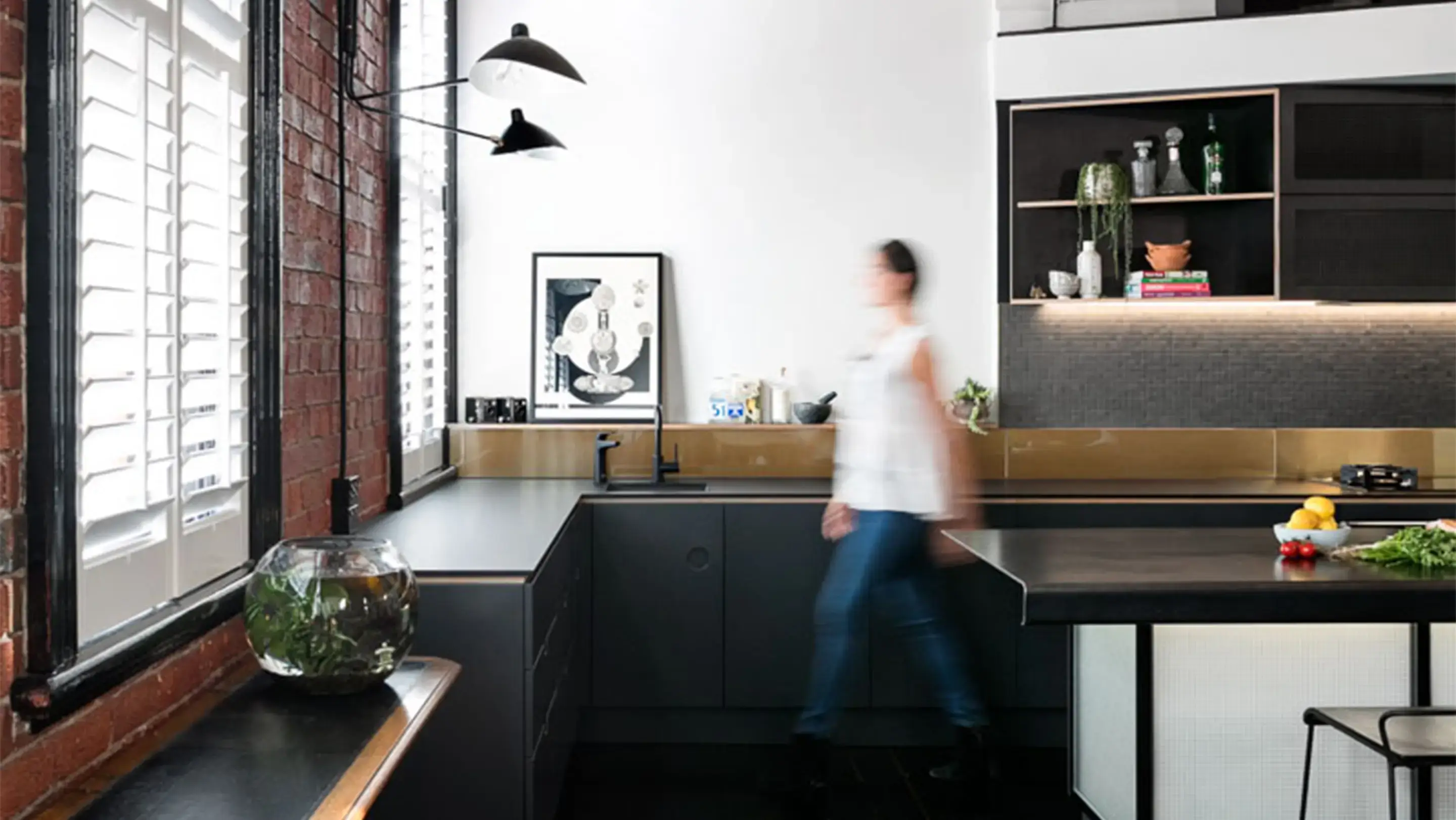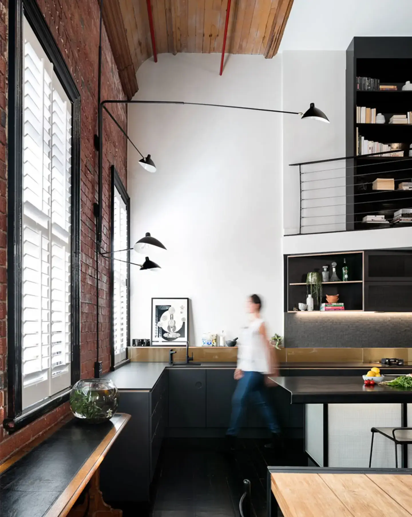 Edgy, dark, and sexy it was not when we first got our hands on this sprawling Collingwood warehouse. It was awash with teal and yellow, with deep roots in the late 90s. We fixed all of that by bringing it 'back in black'. Oozing with industrial elements – the bespoke rolled steel island bench with an illuminated security glass face is the hero of the space. These materials were accented by bluestone mosaic tiles, a brass splash-back, and high-tech Fenix bench-tops. Make no mistake – despite being highly specified, this was a cook’s kitchen and was later used by the late MasterChef Jock Zonfrillo for his social media test kitchen.